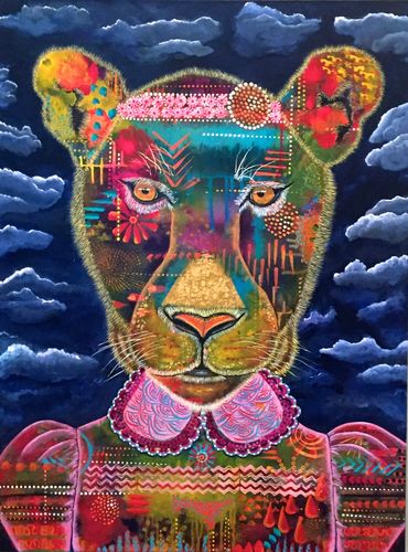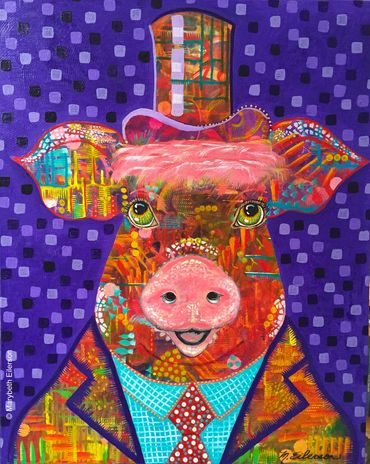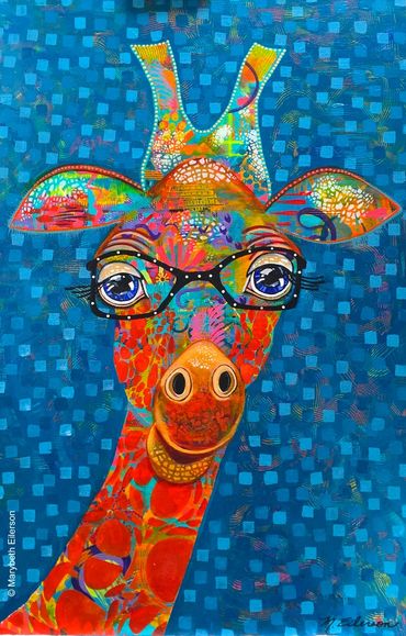 Be prepared to smile! My vibrant, whimsical art will brighten both your room and your mood, with its bright colors and humorous characters. Whether taking center stage over the fireplace or gracing the walls of an entry, den, bedroom, or nursery, my quirky animals have attitude and style that are sure to have people talking. Some of these originals have been sold, but prints are available in a variety of sizes. Click on the images below to see what's available!